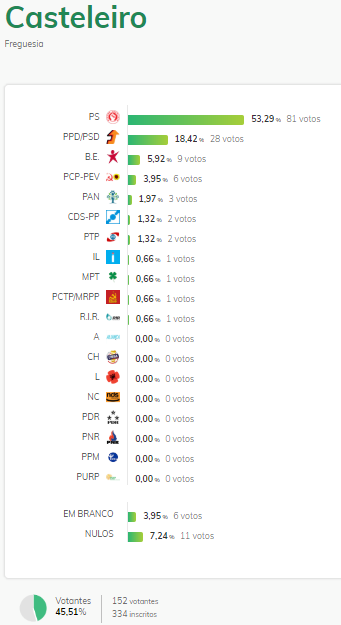 Casteleiro: 1527: 52 habitantes; 1758: 527 habitantes; 1801: 462